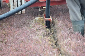 “Bill talked about this at the ACGA summer field day a little bit,” says Assistant Manager Mike Haines. “The smaller size should make it easier for repairs, and installing it isn’t nearly as hard on the vines, which is great.” However, there was a bit of prep to take care of first. “There were several patches with just weeds growing; rushes like swampy areas, Dad says. If you see rushes growing in a bog, it’s too wet for berries. So Kelvin had a crew out here hoeing all the weeds, and then they added sand to make the spots level with rest of bog. One reason for standing water could be that the bog’s out of level, acting like a bowl, and the water just collects. So taking out those weeds and leveling things off might help.”