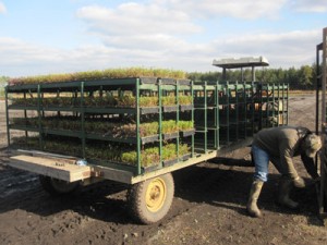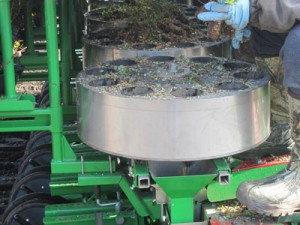 The process remains the same as it does for our spring 2012 planting: the planter is loaded with the rooted cuttings, which drop onto a carousel: