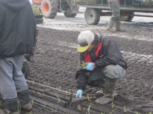 And then other team members follow the planter to make sure the cuttings have been placed correctly.