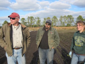 The soil will also stay wetter longer. “That can be ideal, but it can also be a nightmare,” says Tug Haines, who is fulfilling the same supervisory role that he did during our spring 2012 planting. “If a rainfall like we got on Tuesday happens in May, you can get a warmer, drier day and it won’t get sloppy. On the other hand, if it dries out too quickly you can kick up a lot of dust.” He also points out that we won’t need to water as much with this November weather. New PIICM supervisor Kylie Naylor adds: “Plants do tend to stick in machines when it’s cooler or raining; that can slow us down.”