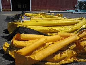 It is important to make sure all of the equipment has been properly maintained well in advance of the harvest: the boom, boom reels, harvesters, et cetera. The boom is taken out and checked for any repairs that need to be made, and so is the reel.