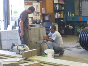 At the same time, we also look beyond the harvest. Getting a head start on bog renovations for 2013, Joan Dominguez and Emmanuel Colon are working on building replacement pipe gates for flooding for our Oswego renovation project.