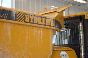 The Hydrema can also take double the load that a dump truck can carry. “It moves a little slower, but we can load seven buckets as opposed to the 3.5 we can get in the regular dump truck,” Carlos says. “That’s still the equivalent of two loads, even taking the slower speed into account.” Our demo model also has the “multi-tip option”, which means we can drop sand from the right side or the left side in addition to the back. This is an highly useful option in many of our typical tasks, such as sanding and bog renovation.