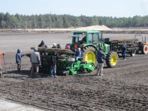 The planting team has been moving faster than ever before, and has even set a new record with over 3.5 acres planted in one day. Team member Casey Koehler attributes this to each team member knowing what their assigned task is in addition to good communication by New Production foreman Kelvin Colon. “We start at 6:30 in the morning and everyone just works,” she says. “Everybody has their job but if they’re needed elsewhere, they’ll step up, no questions asked. We switch off a lot, too; it can be hard on your back sitting on the planter. So people will exchange jobs so there are fresh hands and a fresh back on the planter.” In addition, Casey says, “The guys doing the hand planting are fast and they’re good. If everyone’s doing their jobs, then Kelvin can make sure everything’s getting done that needs to be done.”