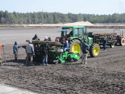 Every day a team member measures the acreage to see if they’ve hit their targets, which started at 2.5 acres/day then changed to 3 acres/day. Some bogs are tougher than others, depending on layout: Boricua #5 has some unusual angles due to topography, which made more hand planting necessary and added to the overall time. But the team has been doing very well and are actually ahead of schedule, expecting to be finished by this afternoon.
