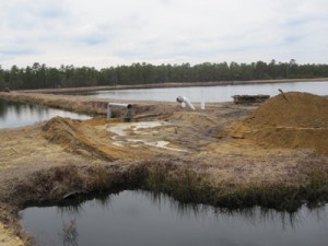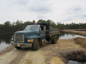 Local resident Pat Tierney, Pine Island’s newest team member (he started shortly after Christmas), is currently working with facilities supervisor Mike Guest on this project. They started out by breaking up the concrete foundation and hauling it away. The next step was to be hauling in dirt to level the ground and pour the new foundation. “It didn’t quite work out that way,” Pat says. “Turns out so much water had gotten underneath the pump house that it’s pretty much quicksand. Now we’re moving sand to prep for when the water comes off the surrounding bogs; once that happens we can fix the ground and put the new pump house in place. Right now we’re keeping things stable.”