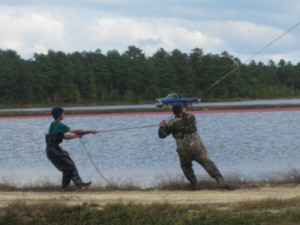 Israel Colon-Burgos is one of our top veterans and a true asset to the Pine Island team. He leads crews wherever he is needed and is Joel DeJesus-Rivera’s second-in-command on the Blue Team picking crew, staking out picking patterns. Each bog is picked in a specific pattern according to terrain, and the picking crew has to carefully move their harvesters around stakes which have been arranged by the team leader for maximum operational efficiency. Following this pattern allows for minimal damage to the vines.