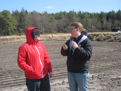 Our first priority is spring planting. Last week, planting supervisor Kylie Naylor explained how she set our targets: based on our fall average numbers, she set up a spreadsheet to calculate how many plants we would need over how many acres in order set targets for both number of trays per day and number of acres planted per day. Advances in technology have also changed our planting goals: a new mechanical planter, the use of rooted cuttings, and changes in irrigation have all made our bog renovation program boost our targets to new levels, and Kylie has risen to the challenge admirably.
