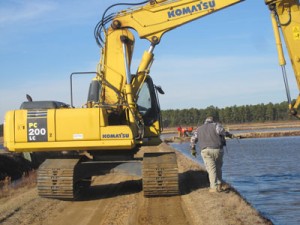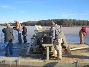 Vince definitely knows how to do whatever it takes. While the winter tasks rarely change from year to year, sometimes problems arise and the team needs to work together to fix them. On this particular day, a cable got tangled while shifting the sanding barge from one side of the bog to the other. But the entire team pitched in to untangle the line safely, and the work quickly got back underway.